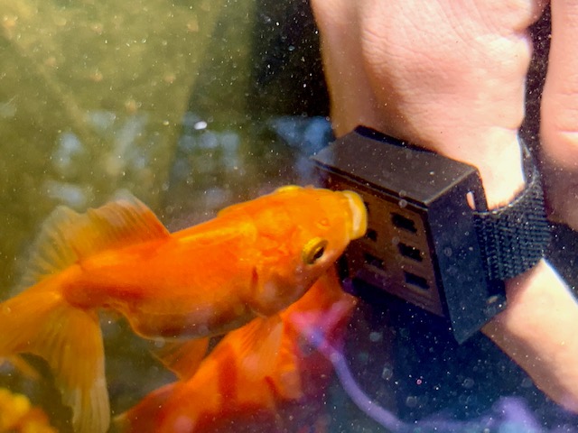 The Fish Pleaser is a small feeding device that goes around your finger. It can be used to bond with fish or other aquatic animals. Food goes into the container and a grid goes on it so the food doesn't all fly out at once. Strap is adjustable. If you live near me (and want to avoid shipping cost) email me atcooper.smallwood0@gmail.com